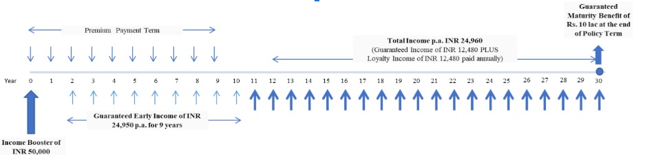 Get Income Booster on issuance, Guaranteed Early Income, Guaranteed Income, Loyalty Income and Guaranteed Maturity benefit.